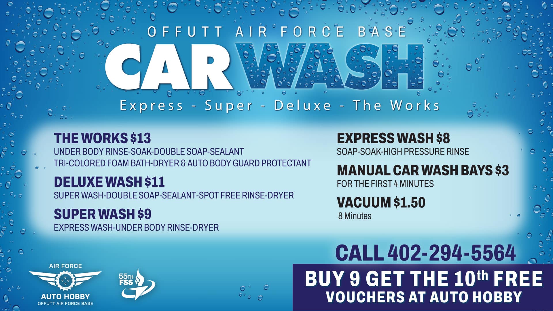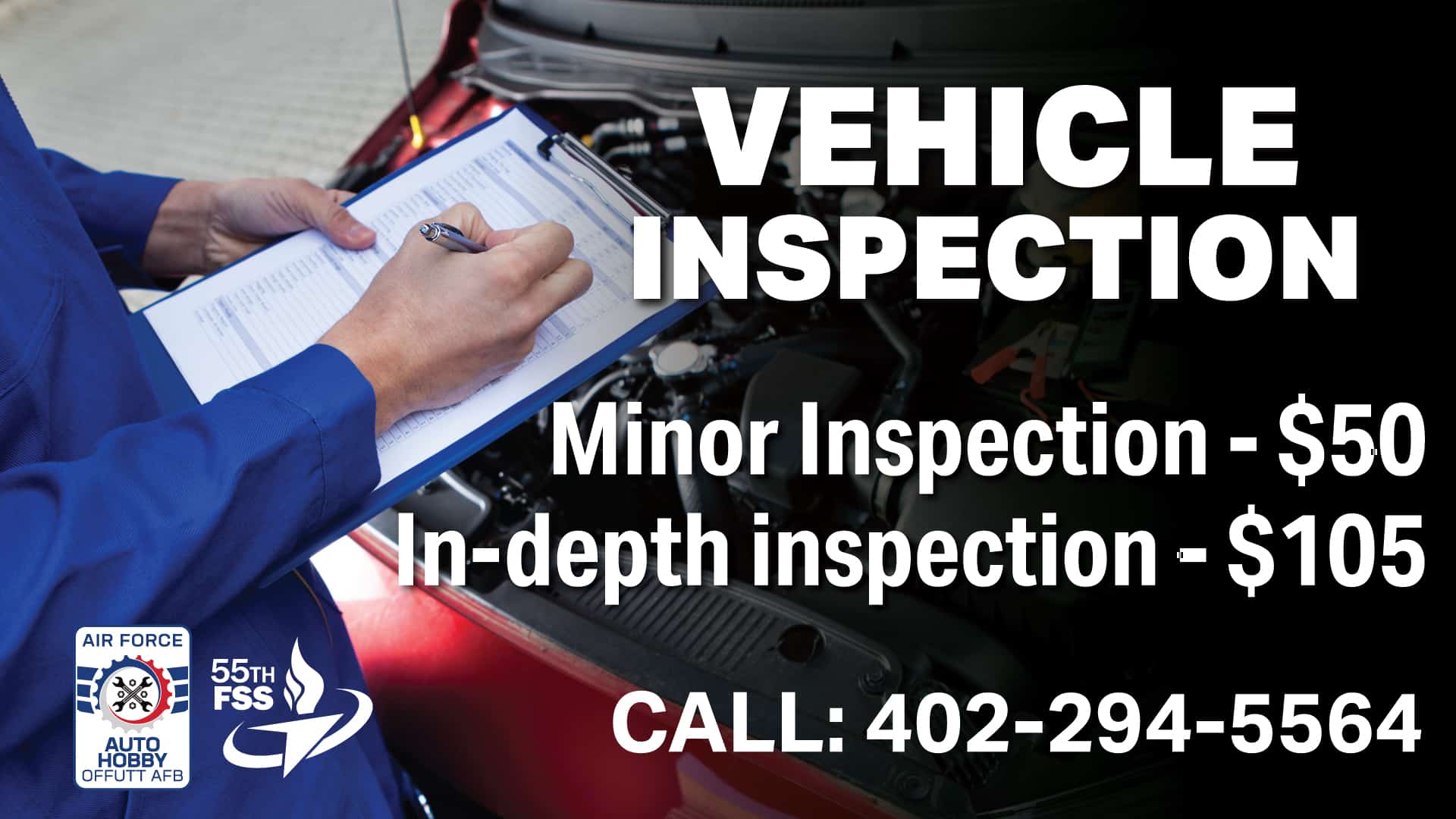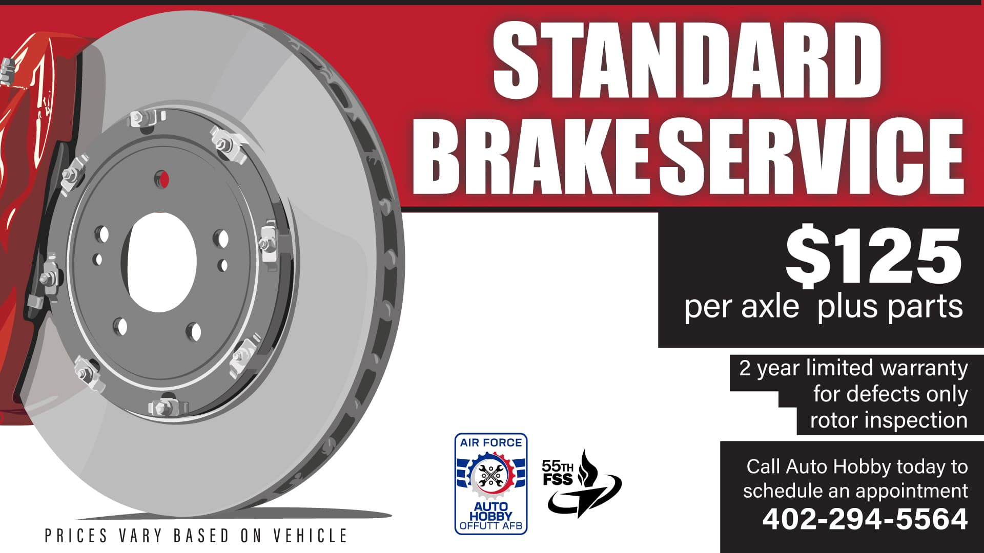 Offutt Auto Hobby is a full-service auto shop and a DIY garage. Our mechanics provide quality service at affordable rates for personal vehicles, golf carts, ATVs, and GSA fleet vehicles. Services include tires, brakes, oil changes, and minor maintenance. Self-service stalls are available for DIY maintenance. Use our flat stalls, drive-on lifts, frame lifts, lube racks, tire machine, and more. We also offer computerized engine analysis, and a battery charging system. Many common items are on inventory. Special items can be ordered including parts, batteries, and windshield wipers. Auto Hobby operates & maintains the automatic car wash, self-serve wash bays, a secure storage lot for automobiles, and a resale lot. Located in Bldg. 362 with Outdoor Rec. Call to make an appointment.
